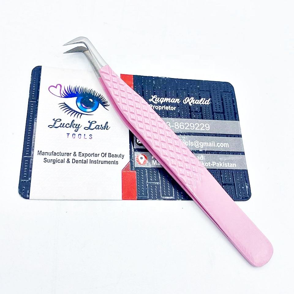 Pince à épiler d'extension de cils à pointe en microfibre rose durable en acier inoxydable solide pince à cils écologique