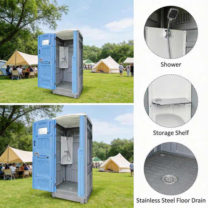 Unité de salle de bain portable en plastique durable pour l'extérieur, installation rapide, douche mobile, toilettes préfabriquées pour événements et camping