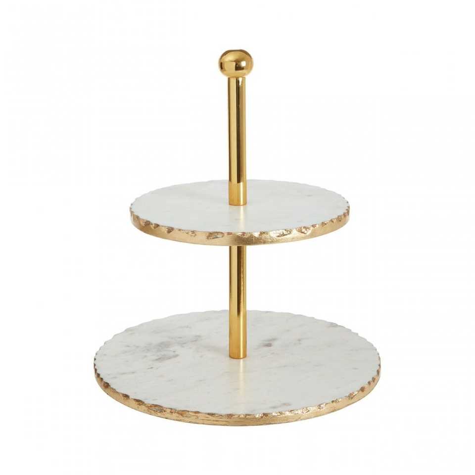 Support à gâteau décoratif en marbre blanc de qualité durable, à 2 niveaux, pour la maison et les hôtels