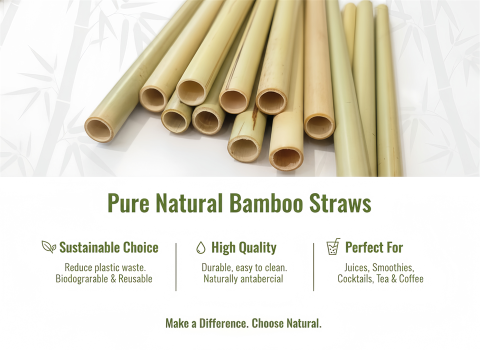 Pailles en bambou durables non emballées, compostables, biodégradables, pailles vertes naturelles pour les services de restauration éco-responsables