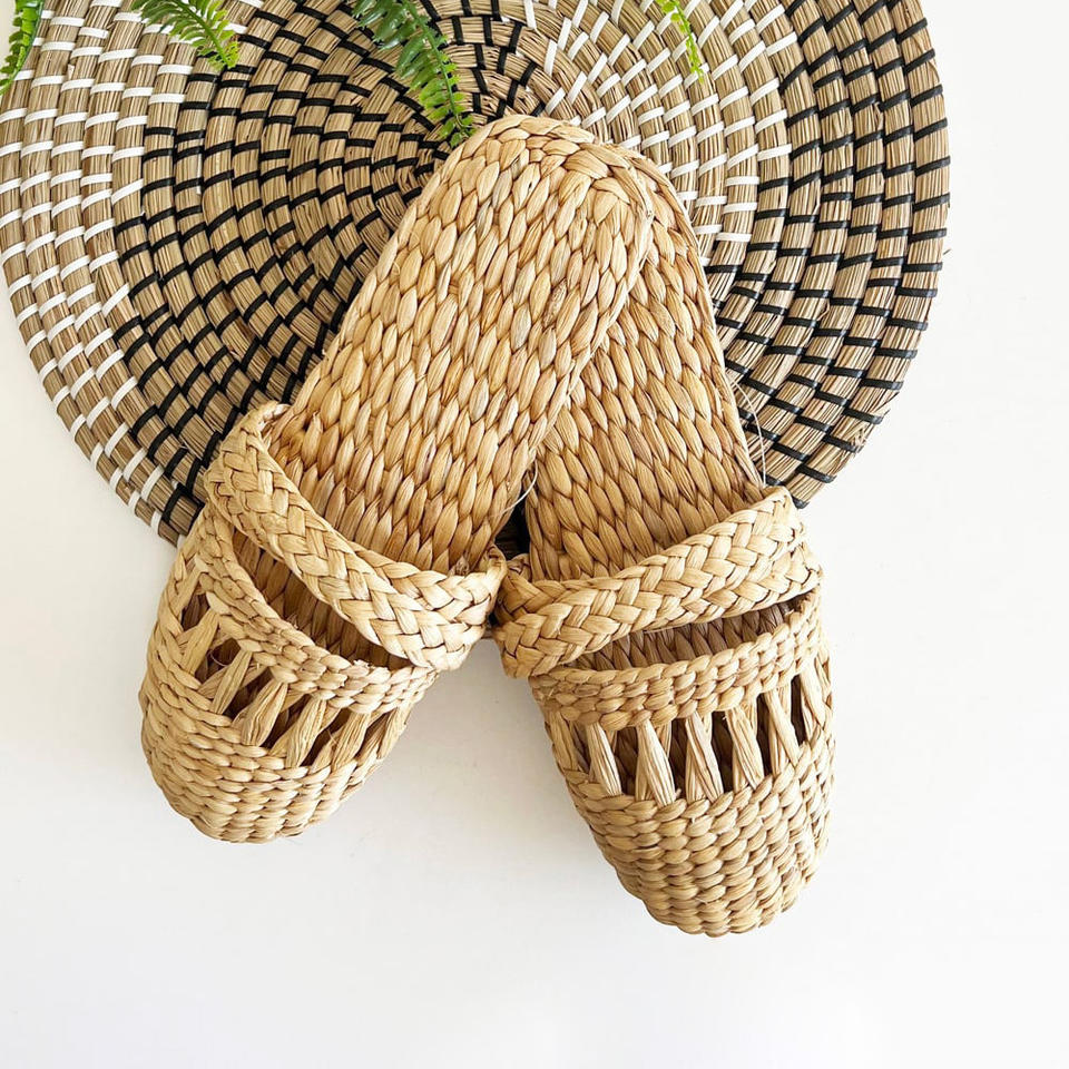 Sustainable slippers for girls handcrafted water hyacinth girl slipper slides produced in Vietnam