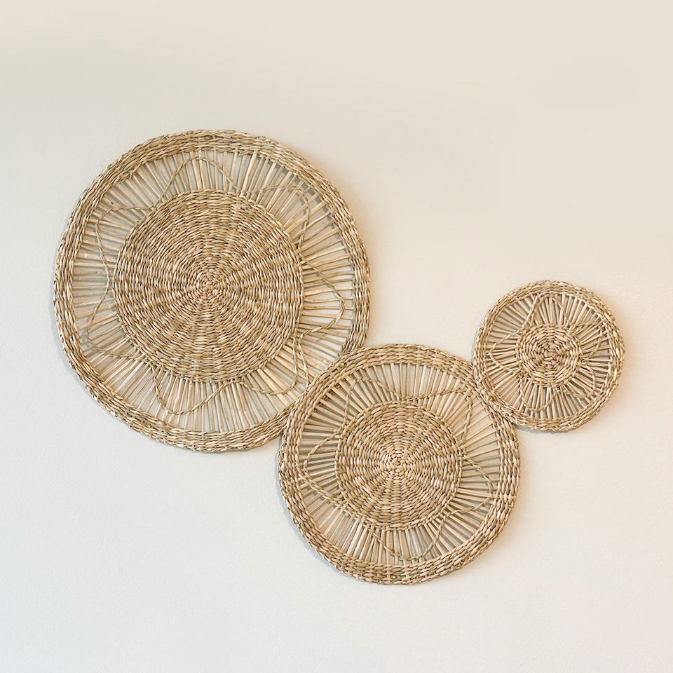 Sustainable straw centerpiece seagrass wall basket woven sea grass hanging art interior house decoration