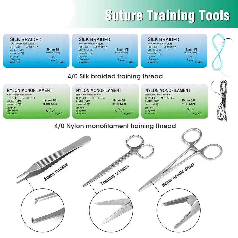 Kit de pratique de suture Étudiants vétérinaires Kit de suture complet de démarrage Outils chirurgicaux de compétences cliniques Instruments médicaux