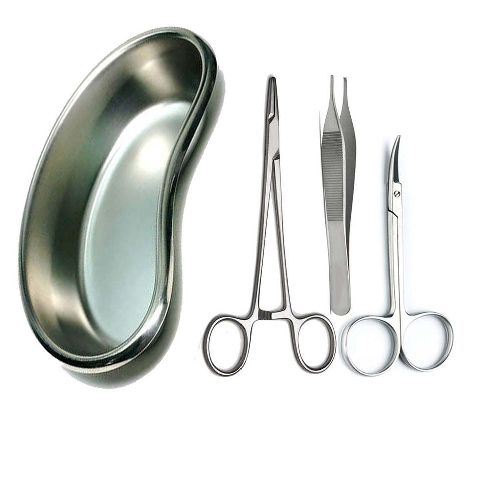 Kit de Suture en Acier Inoxydable avec Porte-Aiguilles, Pinces Adson, Ciseaux Iris, Plateau Rénal 8 pouces – Matériel Médical par Dentavex