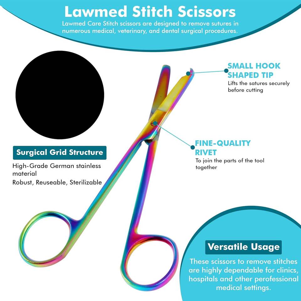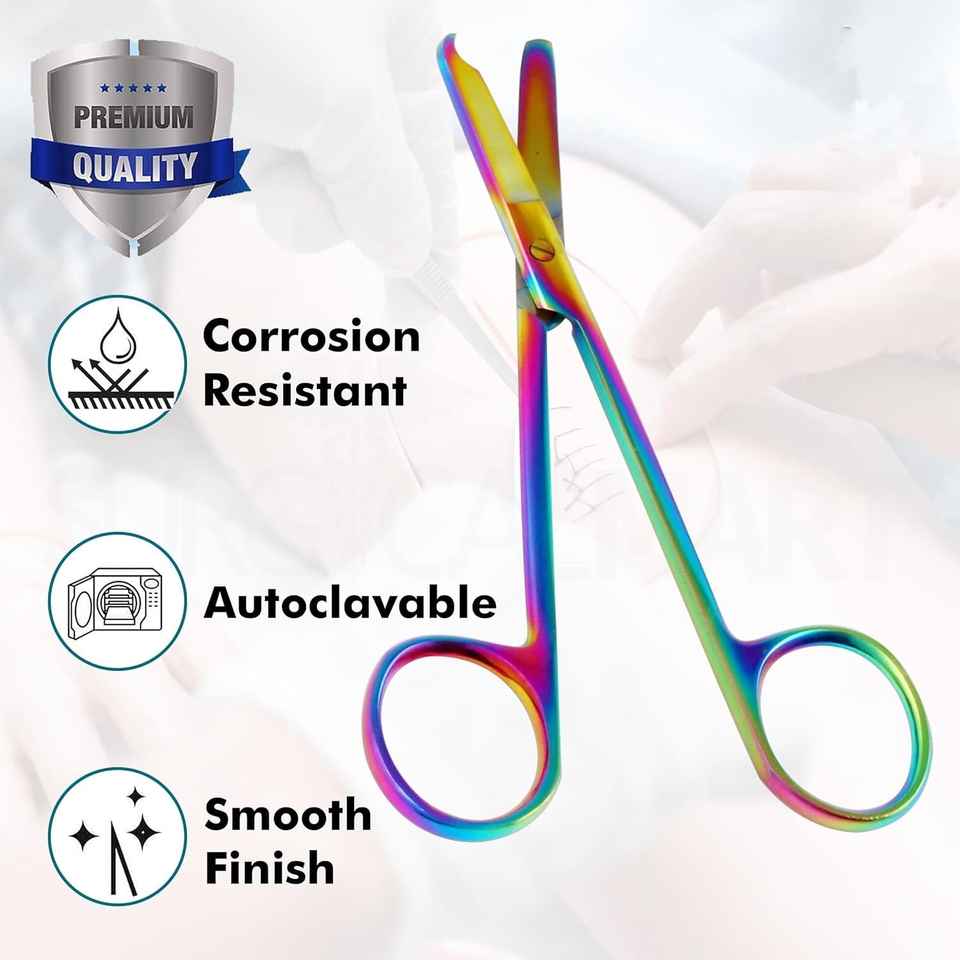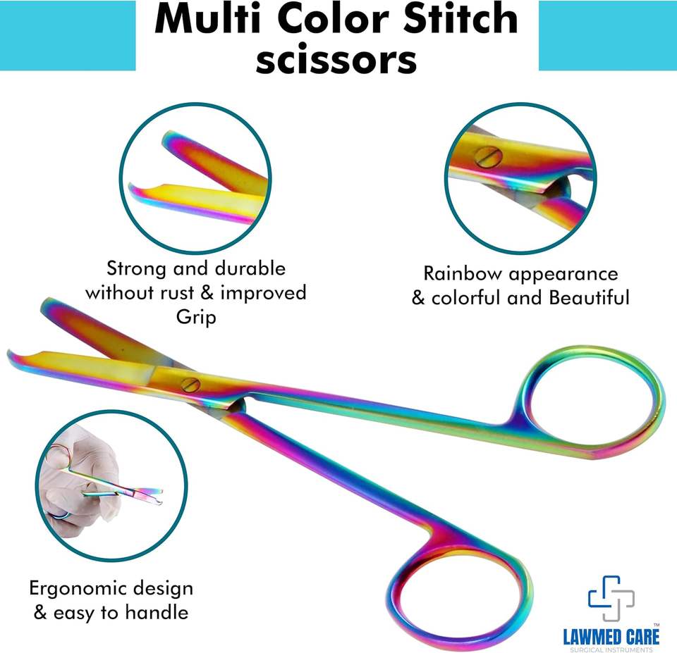 Spécification:Conseils émoussés, Acier inoxydable, Poignées de couleur d'anneau, Lames tranchantes, CISEAUX DE SUTURE SPENCER, Premiers secours