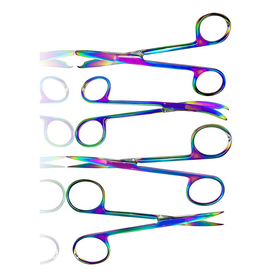 Ciseaux à suture et ciseaux à micro-pointes Iris avec revêtement en titane arc-en-ciel multicolore, qualité supérieure, crochet délicat