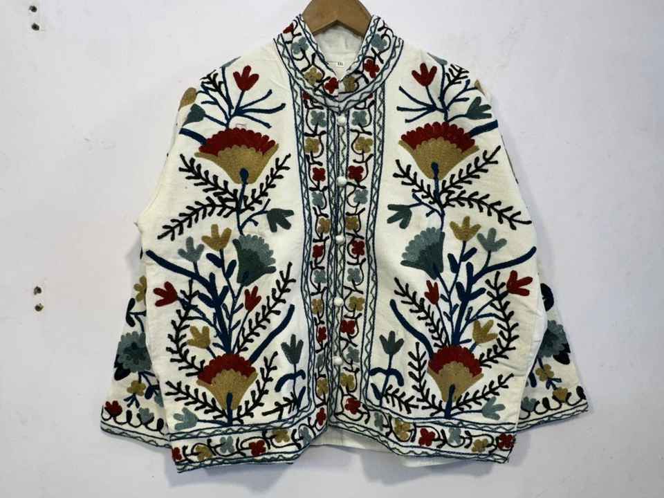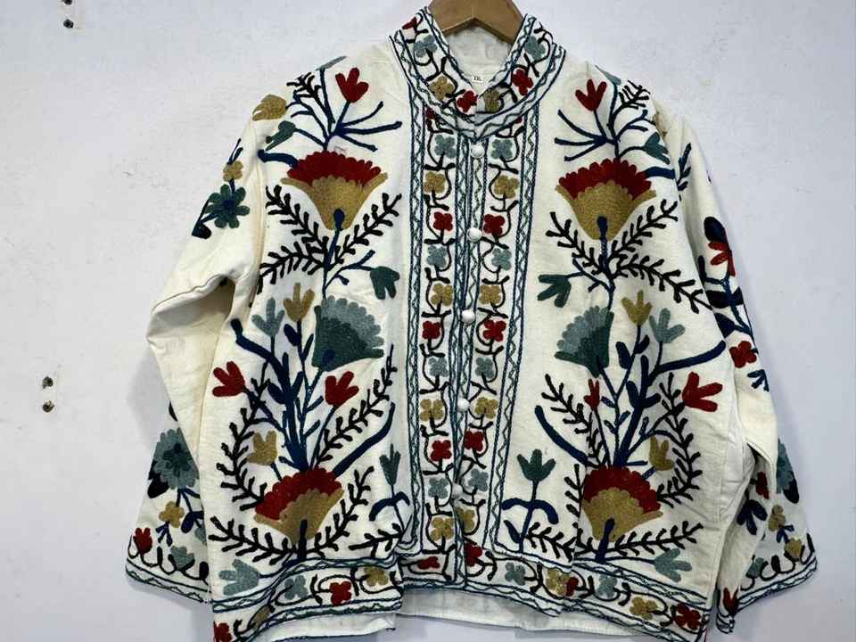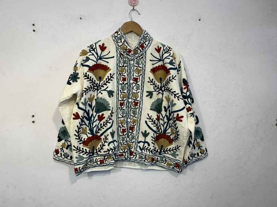 Blouson Bomber Femme en Velours Rouge Tricoté Respirant Brodé Suzani Style Kimono Hiver avec Détail Lettres – Tendance Streetwear, Idéal Cadeau