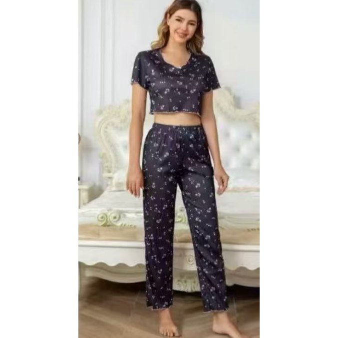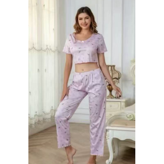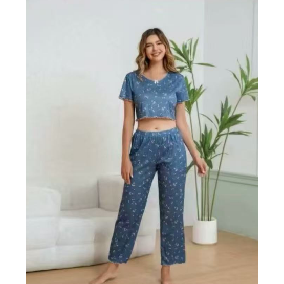 Suzhen Mori Style Women's Floral Trousers Home Suit Short-Sleeved Two Piece Set in XS-XXL Sizes Model 2266