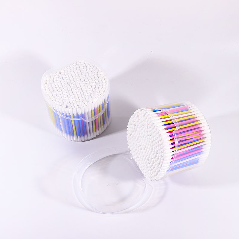 Fournisseurs d'écouvillons jetables Q Tips nettoyage des oreilles 300 pièces coton-tige coton-tige de couleur mélangée avec boîte ronde