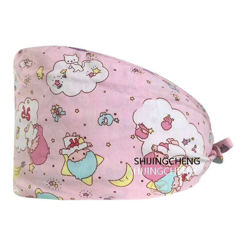 Sweatband Lined Working Hat Coquette Bow Scrub Cap Adjustable Pink Tie Back Bouffant Hat with Button for Doctor Nurse