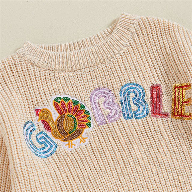 Sweater Long Sleeve Crew Neck Sequined Letters Turkey Winter Warm Knit Pullover Thanksgi Ving Baby Girl Boys Sweater