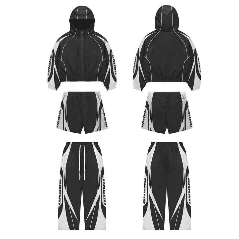 Ensemble de survêtement 3 pièces décontracté, pantalon à cordon, veste à capuche, 100% nylon, séchage rapide, léger, avec bandes réfléchissantes