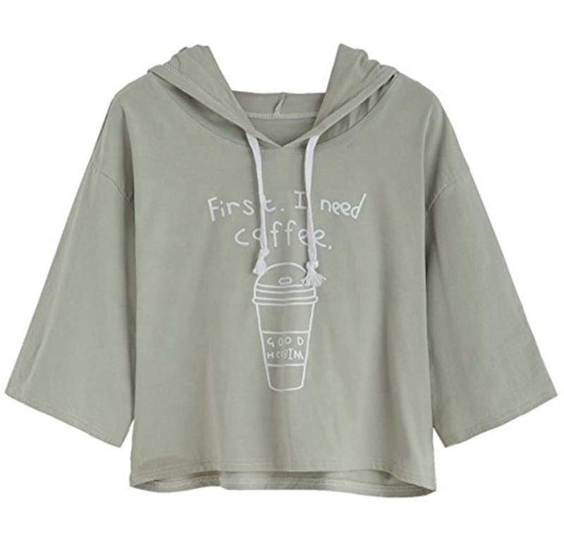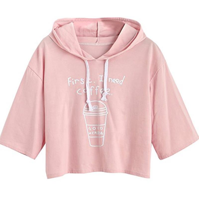 Haut court à capuche pour femme Sweaty Rocks, grande taille, printemps-été, manches 3/4, imprimé AND1 brodé et délavé
