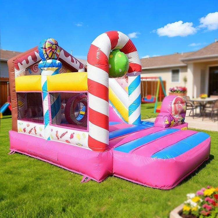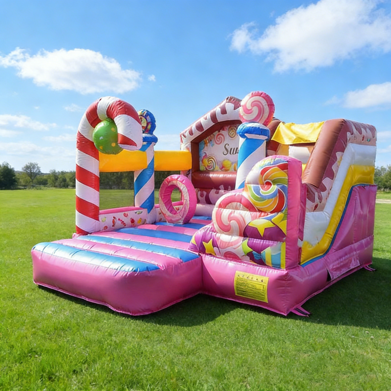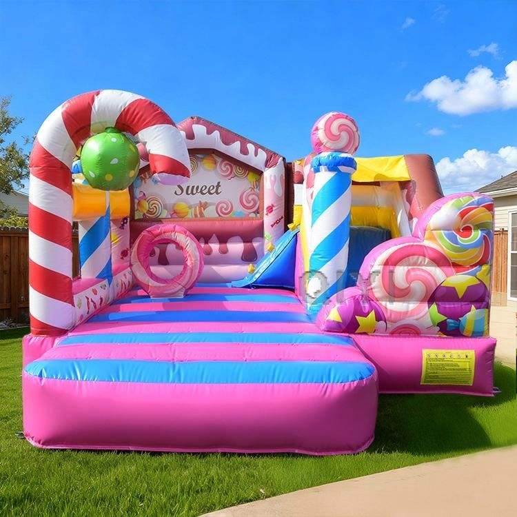 Château gonflable commercial avec toboggan, motif sucette bonbon, pour enfants, idéal pour la location événementielle
