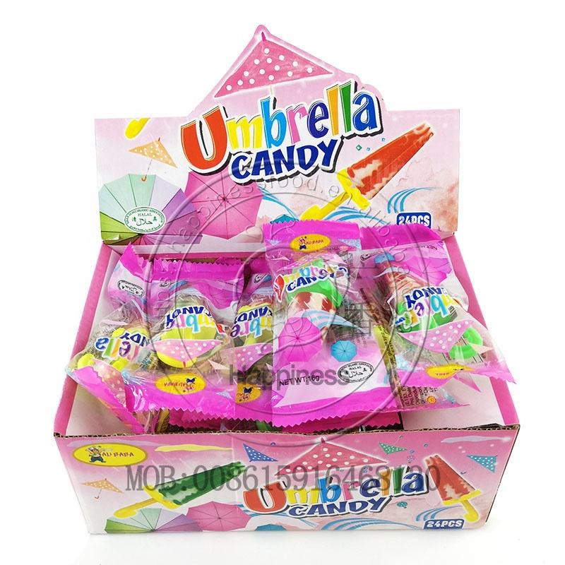 Nom du produit:Bonbons de sucette dur fruit en forme de parapluie coloré doux