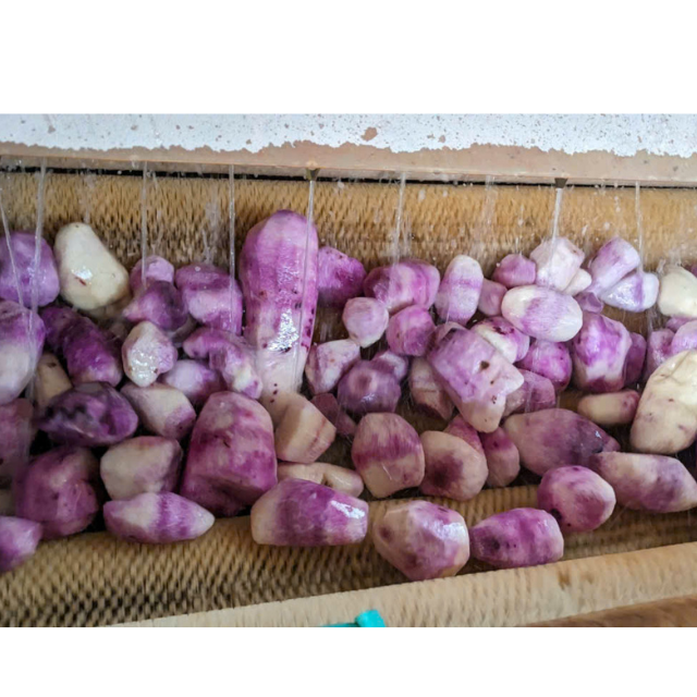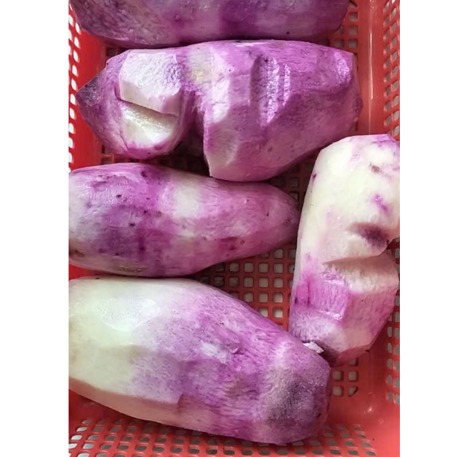 Igname douce congelée avec une teinte violet foncé, prête à l'exportation dans des sacs sous vide ou en poly, idéale pour la cuisson et les recettes traditionnelles