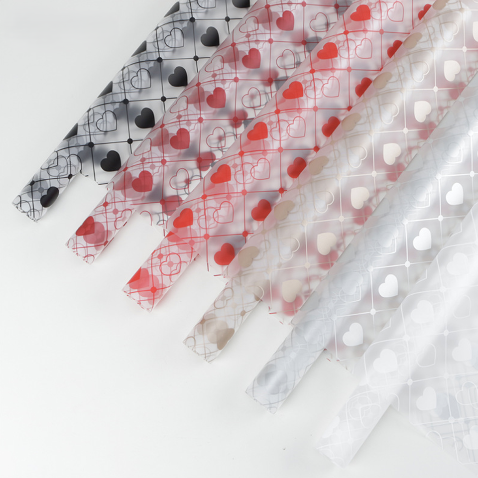 Papier de fleur imperméable en forme de coeur doux Offre Spéciale Bouquet de fête des mères Tanabata papier d'emballage personnalisé en film de gelée finition mate