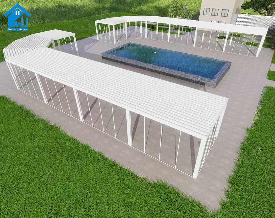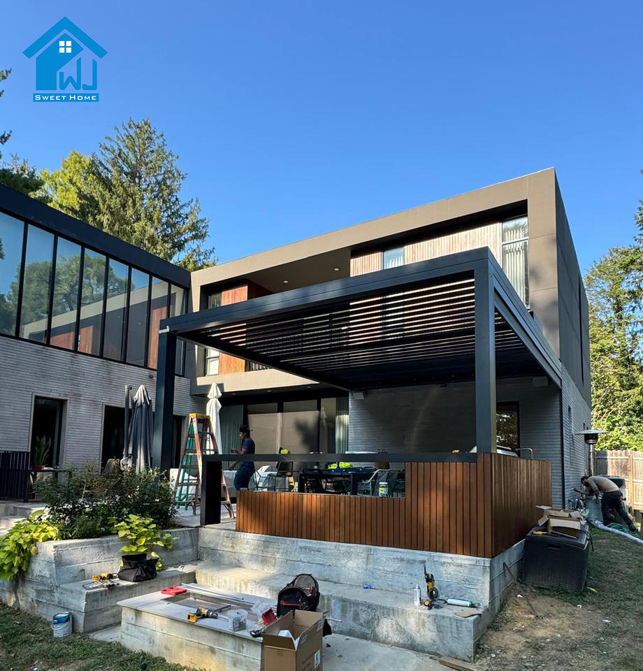 Nom du produit:Pergola bioclimatique motorisée en aluminium à lames orientables au design moderne
