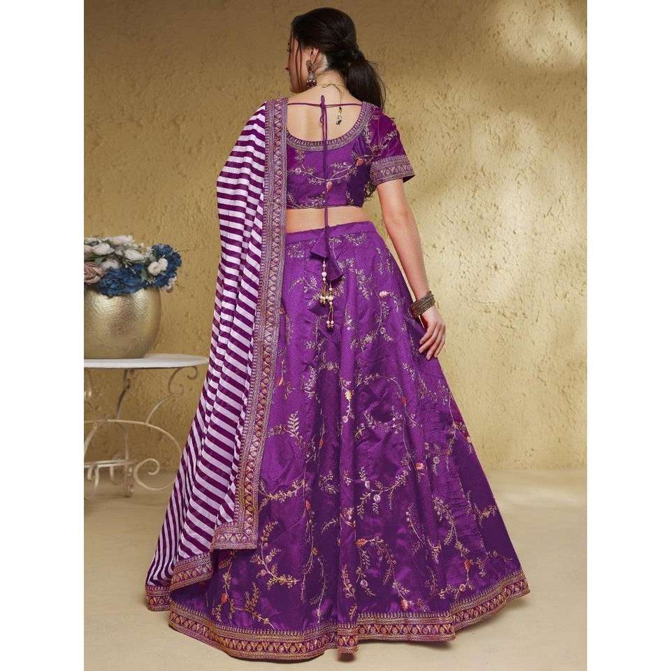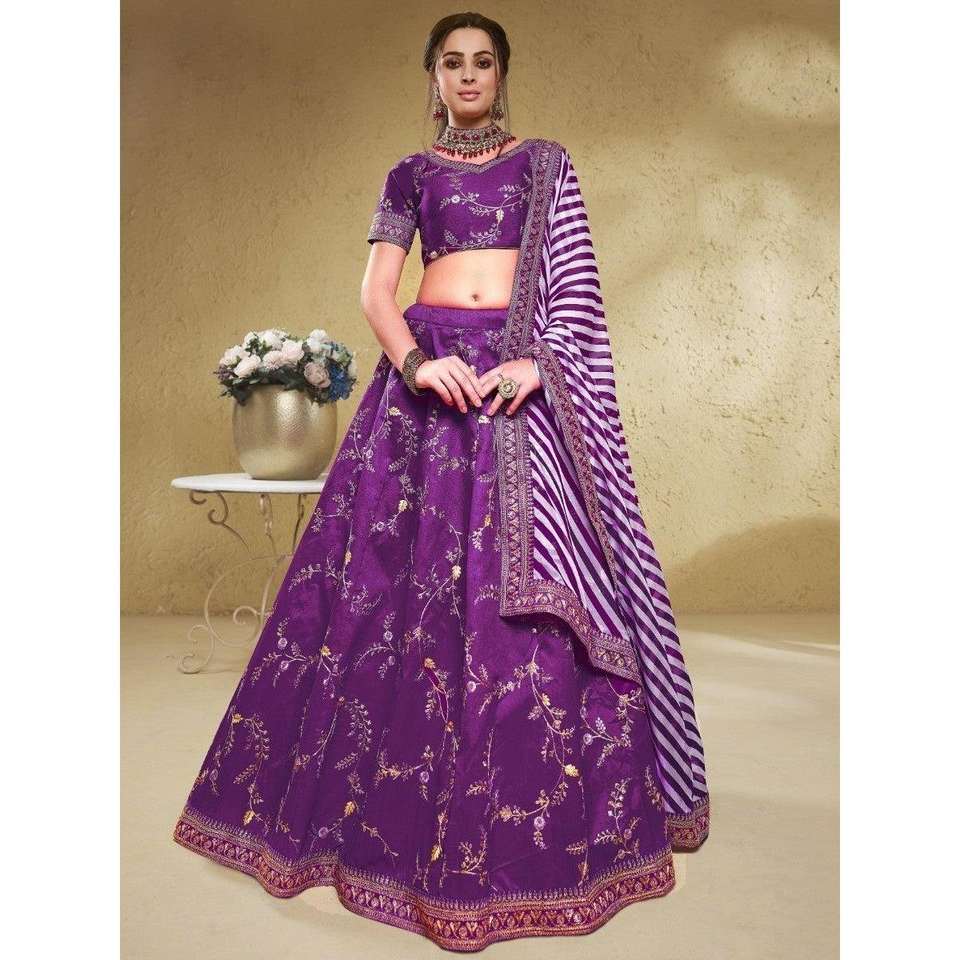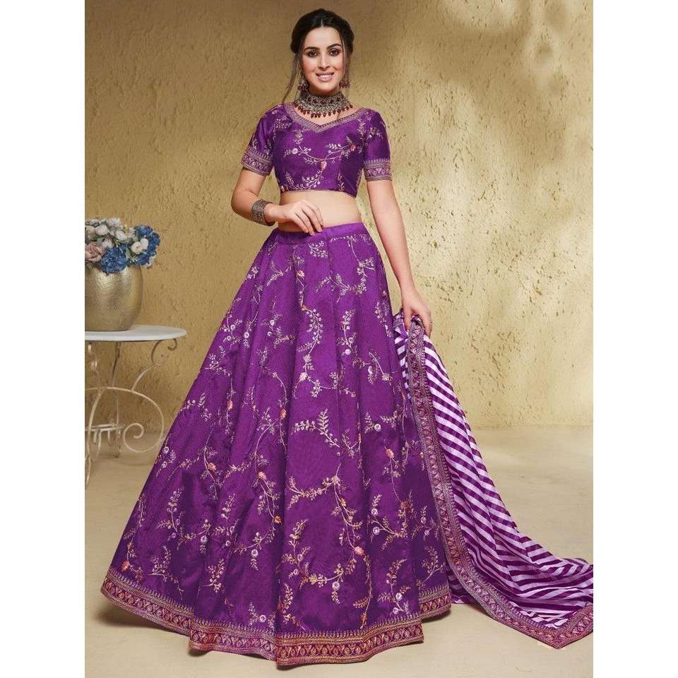 Sweet Purple Embroidered Silk Engagement Wear Lehenga Choli