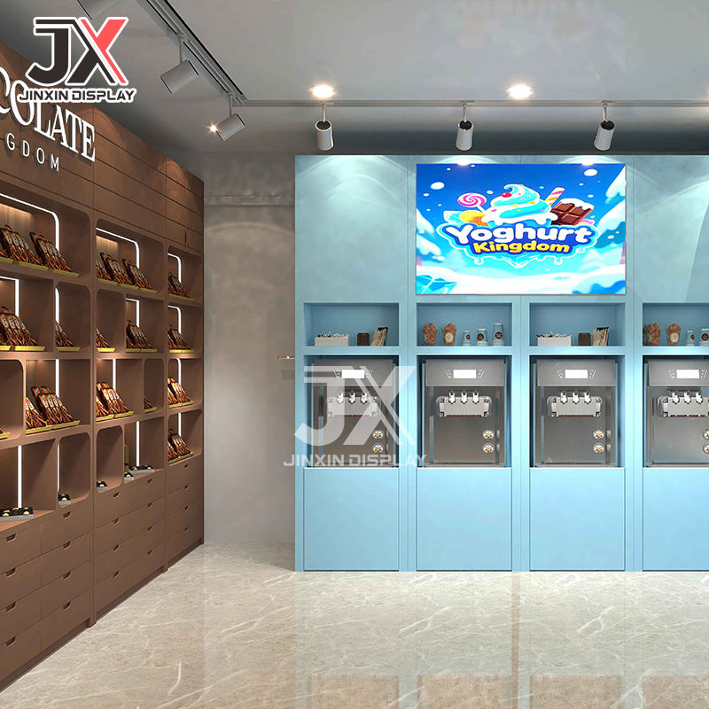 Sweetshop Counter Confectionery Rack Lollipop Showcase Candy Display Cabinet Chocolate Sweet Shop Shelve Furniture Design Custom