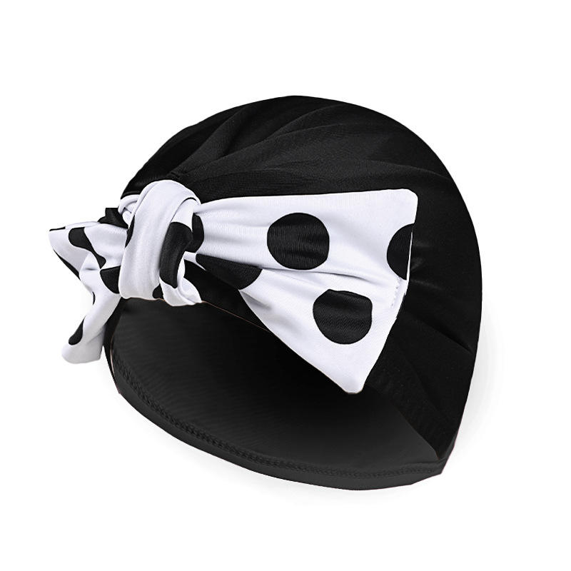 Bonnet de bain pour cheveux longs, taille plus adulte, noir avec fleurs blanches, accessoire de maillot de bain en polyester