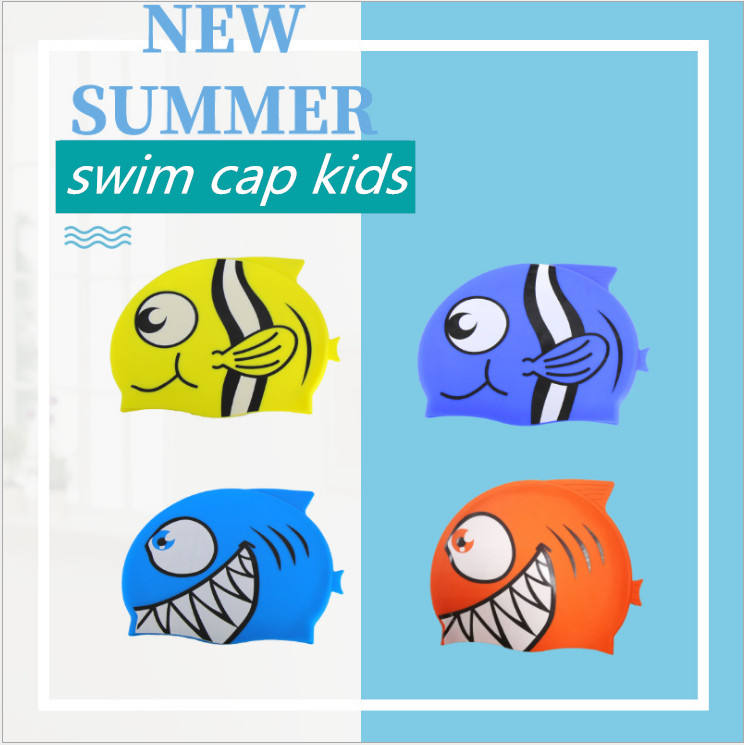 Chapeau de natation amusant en Silicone, pour enfants, avec requin, dessin animé, logo personnalisé pour garçons et filles