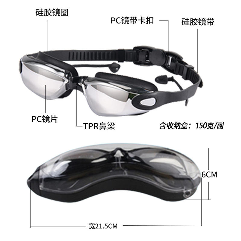 Lunettes de natation anti-buée avec lentilles en polycarbonate, bandeau en silicone, ajustement universel, verres miroir électroplaqués