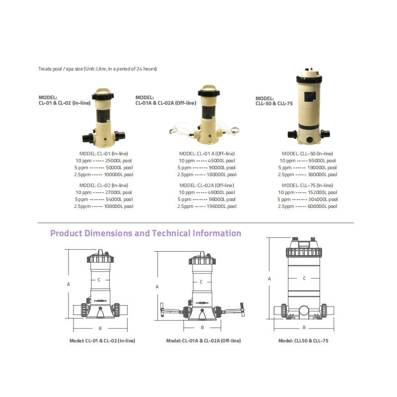 Dispositif de dosage chimique pour la chloration des piscines, adapté aux piscines résidentielles et commerciales.