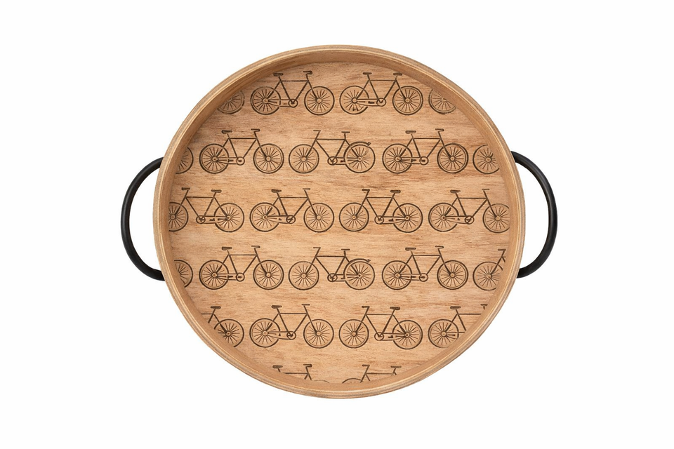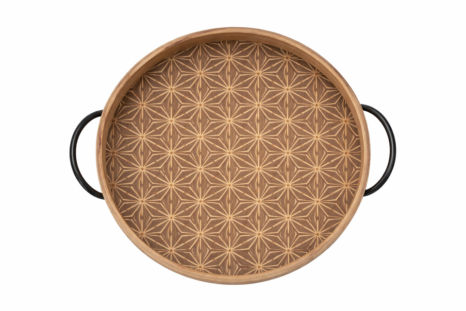 Plateau de service rond en bois à motif tourbillon avec poignées, plat artisanal, assiette décorative, synonymes plateau de service