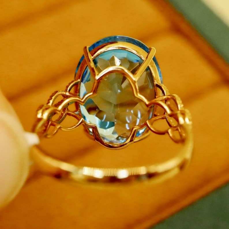 Keyword:Swiss Blue Topaz 14K Gold Ring Sky Clarity Warm Shine Sculpted Calm
