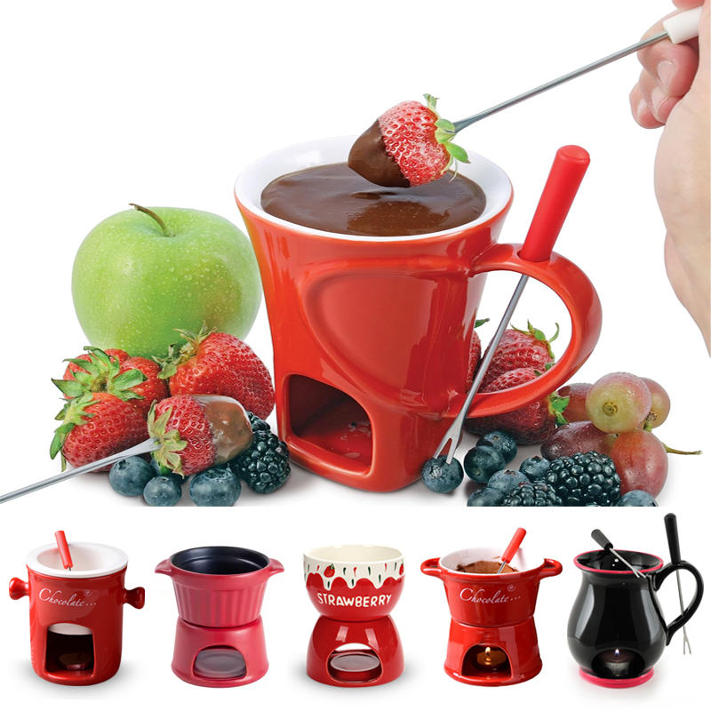 Fondue au fromage suisse Bougie au fromage au chocolat rétro Pot en céramique Taza De Fondue De Chocolat De Céramique Fondue Mug