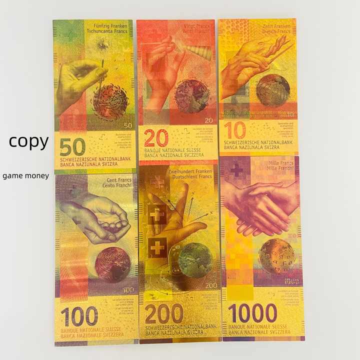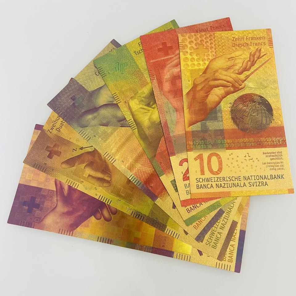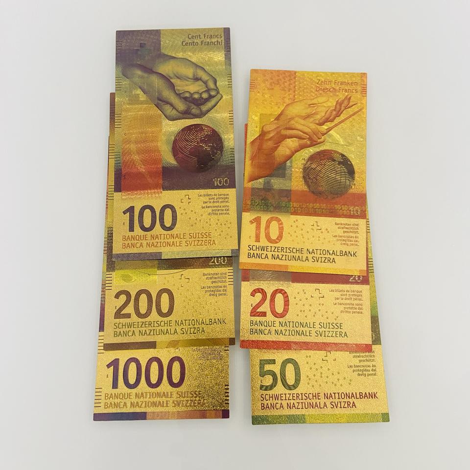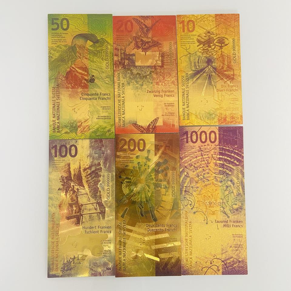 Ensemble de billets de banque en feuille d'or du Franc Suisse, 6 pièces (10, 20, 50, 100, 200, 1000 Francs) pour cadeaux, souvenirs, lot mixte de billets en feuille d'or
