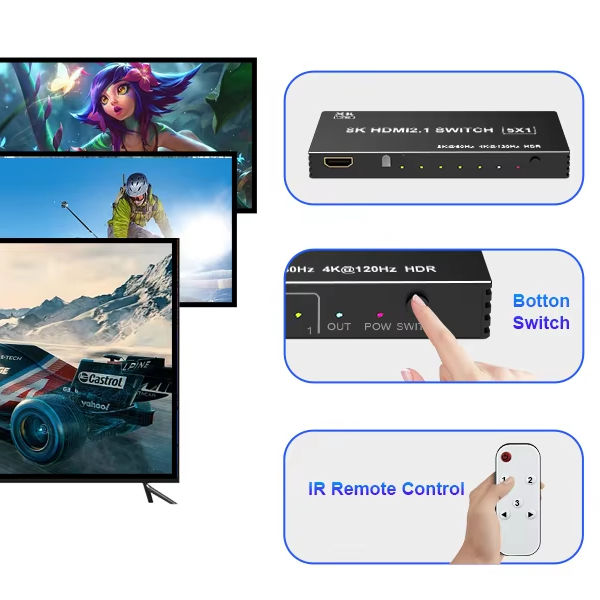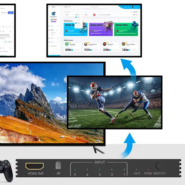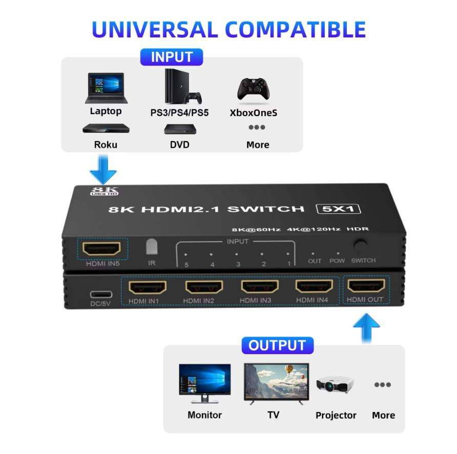 Switch Splitter 120Hz 3/4/5-port 4K 120Hz Splitter Switcher CEC 48gbps avec télécommande