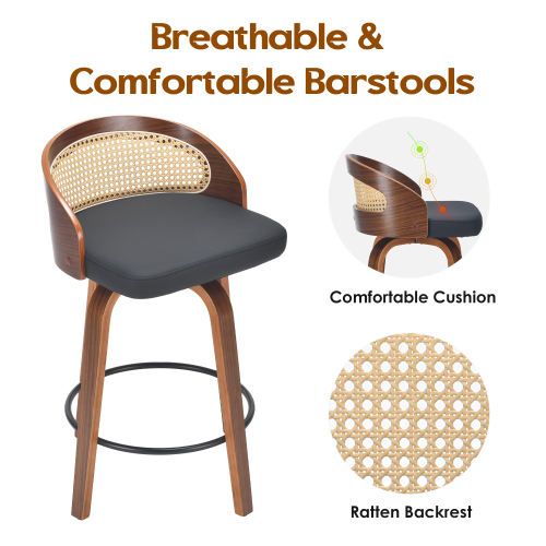 Ensemble de 2 tabourets de bar pivotants et réglables, structure en corde de papier moderne, assise en cuir PU, usage commercial pour hôtel, cuisine, comptoir, salle à manger, salon
