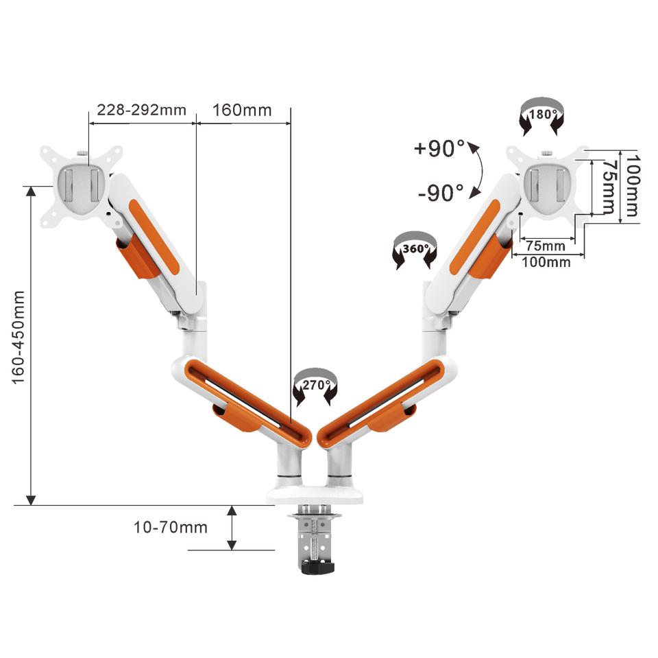 Écran VESA pivotant réglable blanc 2 bras 34 pouces support de bureau moniteur à bras double montage