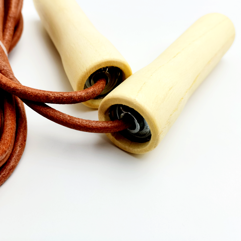 Corde de vitesse en cuir véritable réglable, poignée en bois pivotante, parfait pour l'entraînement physique de Cardio