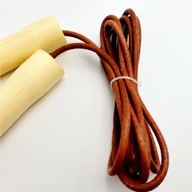 Poignée en bois, corde en cuir véritable