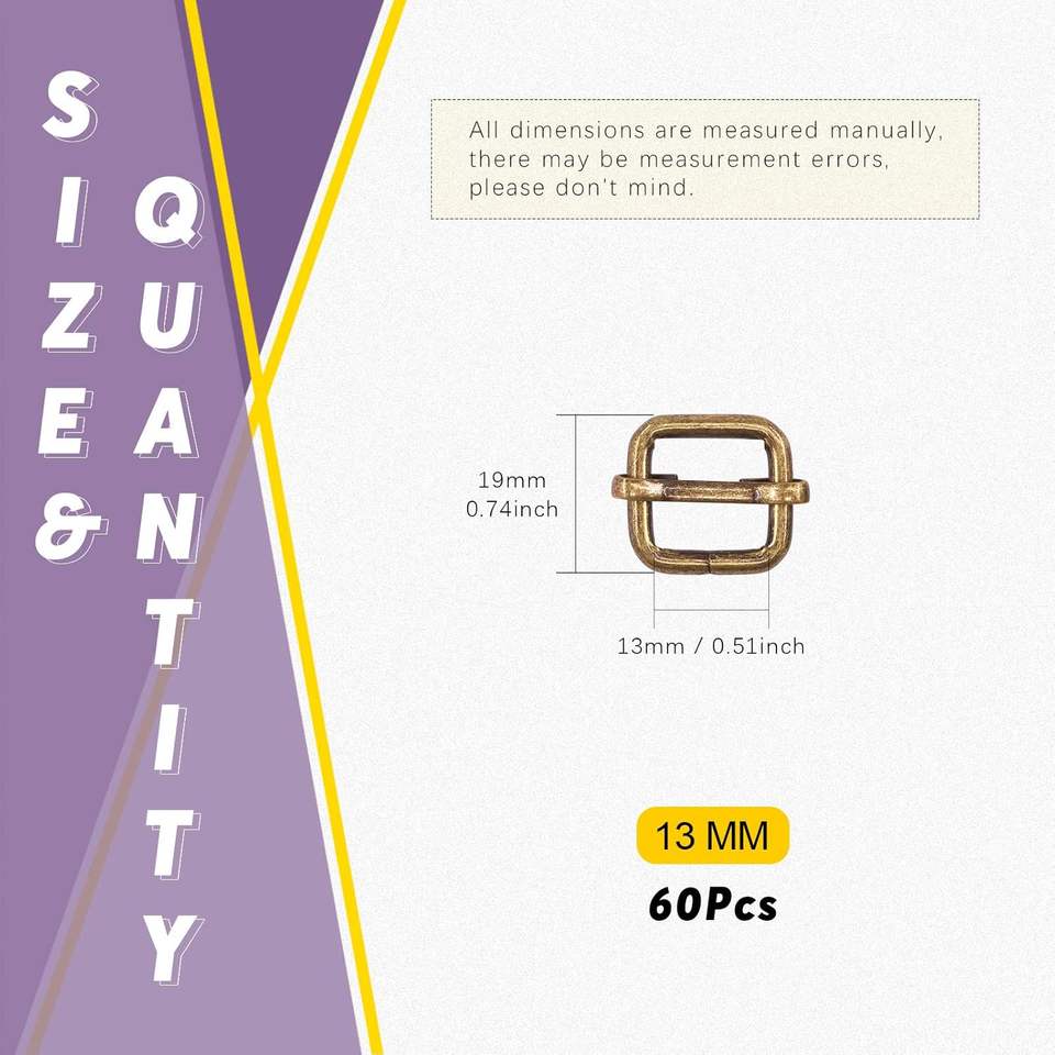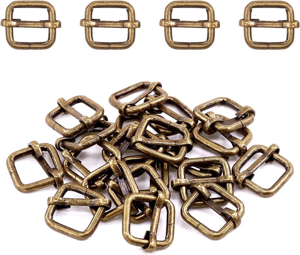 Swpeet Pcs Inch Mm Anneaux métalliques en bronze, ajusteurs rectangulaires métalliques, glissières, boucles à rouleaux, boucles à broche, ajusteurs de sangle