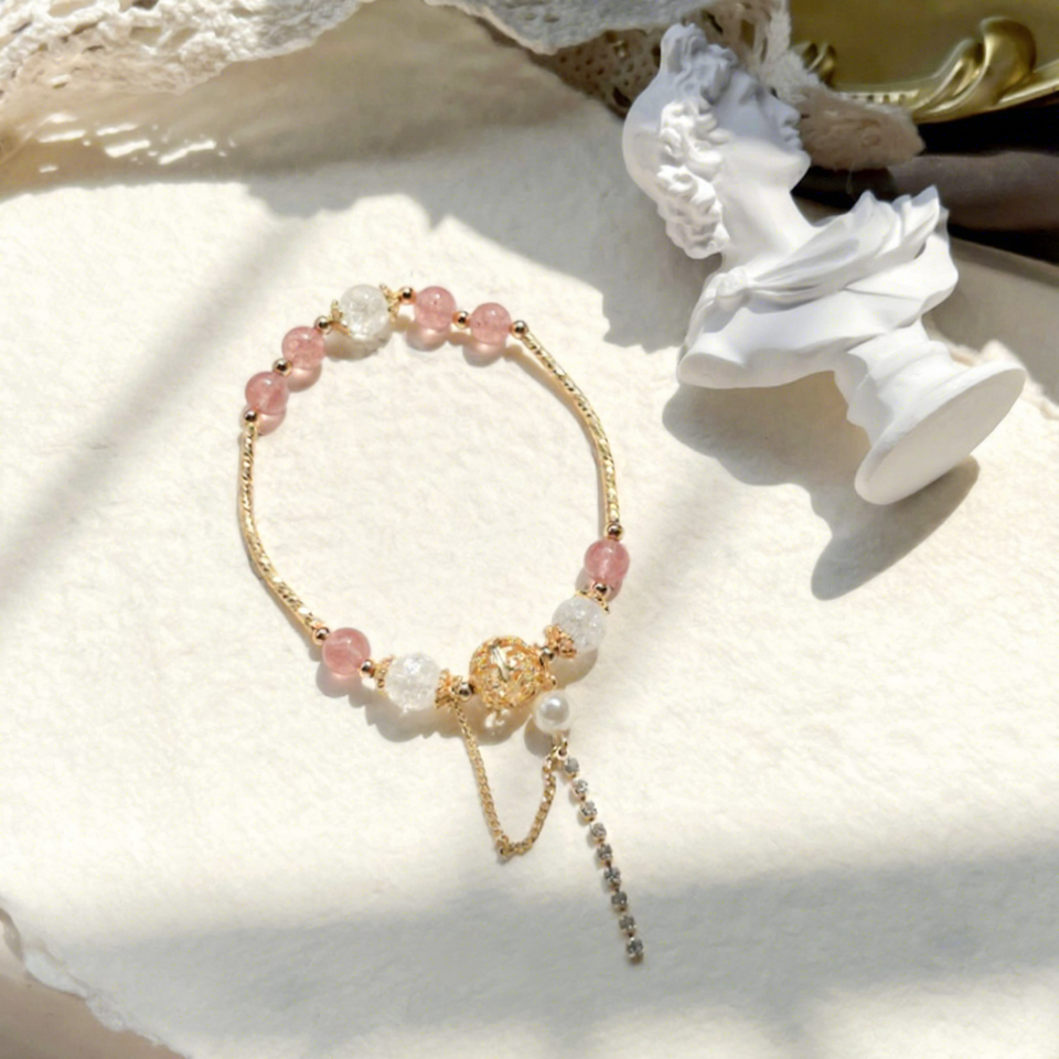Bracelet en perles de cristal de fraise naturel, symbole d'amour et d'amélioration des relations, cadeau pour les amis
