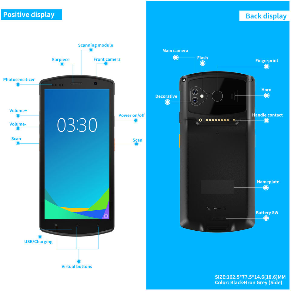 Symcode MJ-Q60 Lecteur de codes-barres PDA portable de 5.7 pouces avec 4 Go 64 Go Android 12.0 sans fil BT LED Light USB RS232 Interface Stock