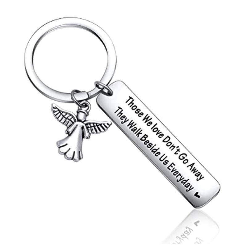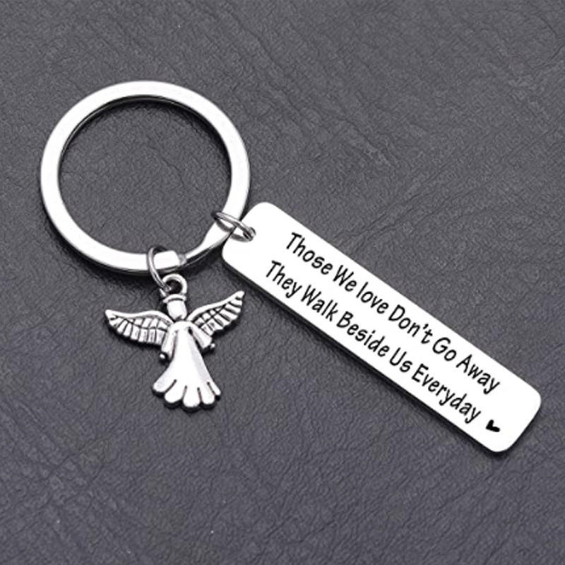 Porte-clés de sympathie Ceux que nous aimons ne s'en vont pas Ils marchent à côté de nous Porte-clés de tous les jours souvenir Perte de la famille aimée Clé en métal chian