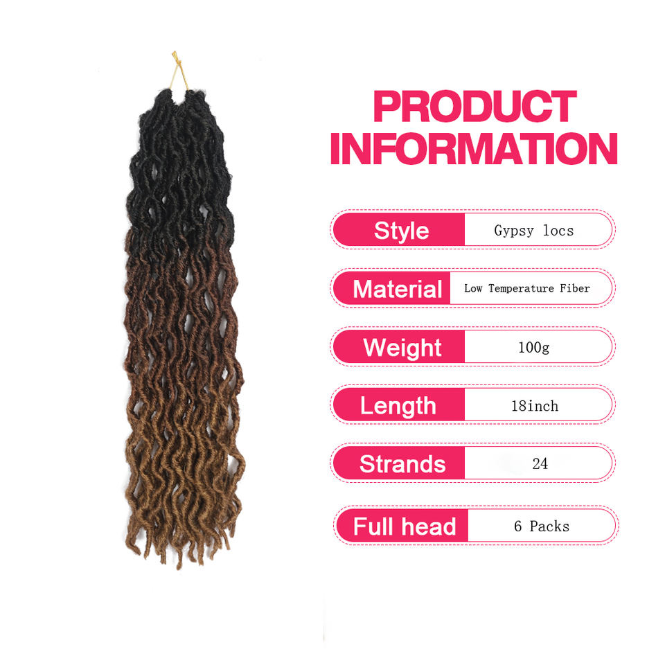 Synthétique 18 pouces Gypsy Locs Extension Jumbo Tresses Freetress Ondulé Crochet Bouclés Tresse Cheveux Faux Locs Gypsy locs