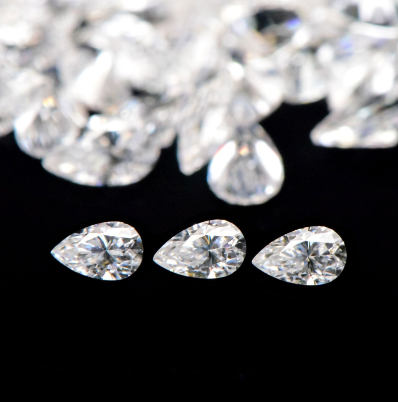 Pierres de moissanite synthétiques de couleur D, taille poire, VVS, haute qualité, couleur blanche, effet de jeu/flammes, pierres précieuses certifiées pour la fabrication de bijoux