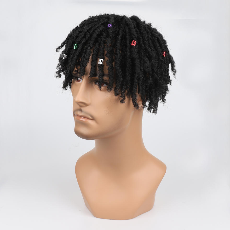 Perruque synthétique pour homme, dreadlocks africaines creuses, toupet, perruques courtes bouclées