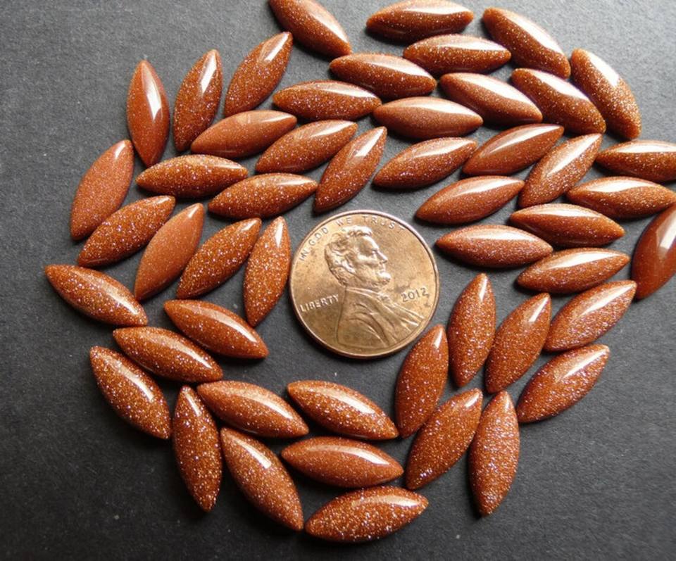 Pierre d'or orange synthétique forme de marquise Cabochon lisse pierre précieuse oeil de cheval gemmes gemme polie paillettes paillettes dorées pierres précieuses