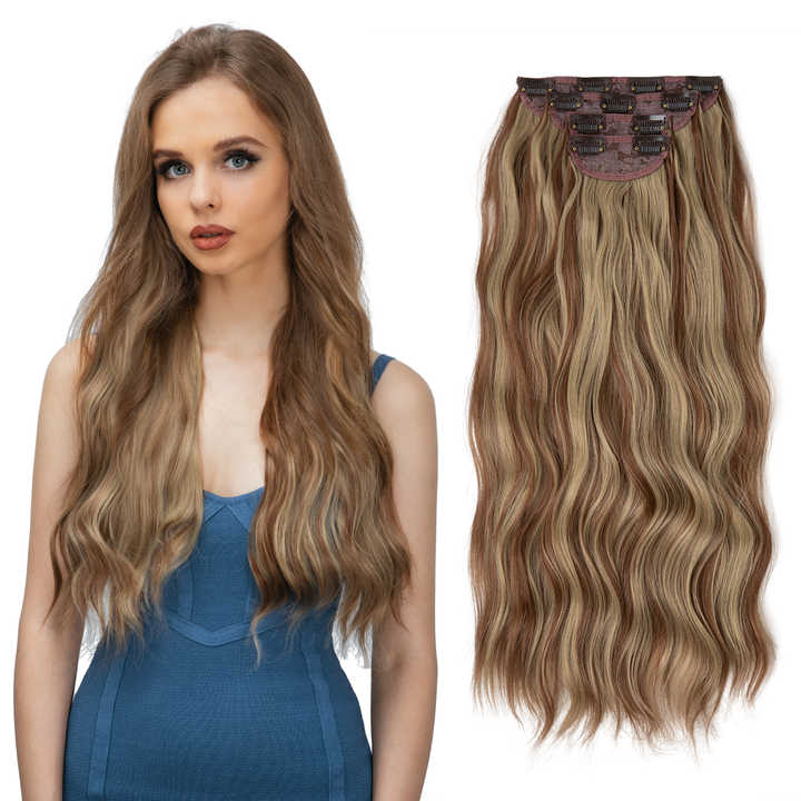 Extensions de Cheveux Ombrées Blondes Sans Coutures à Clips Invisibles Bouclées en Fibre Synthétique de Haute Qualité Résistante à la Chaleur de Notre Marque
