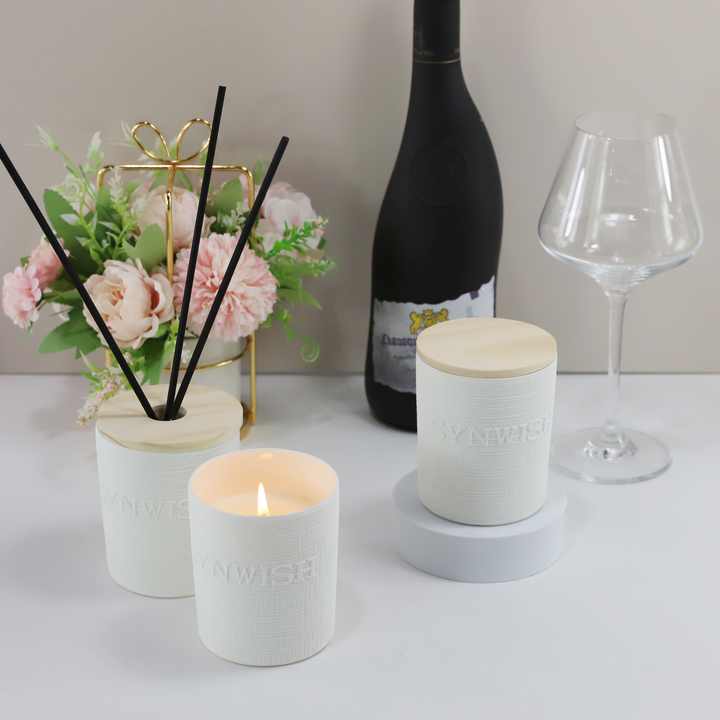 Bougie de soja parfumée personnalisée Synwish dans un récipient en céramique réutilisable avec boîte cadeau de luxe