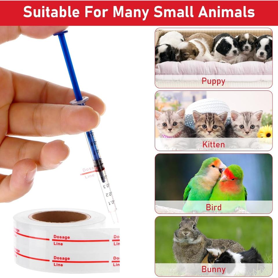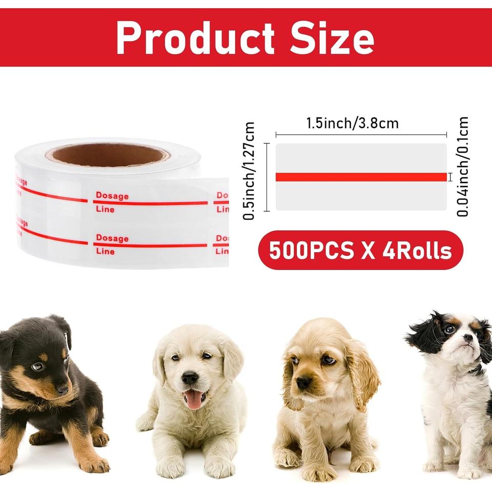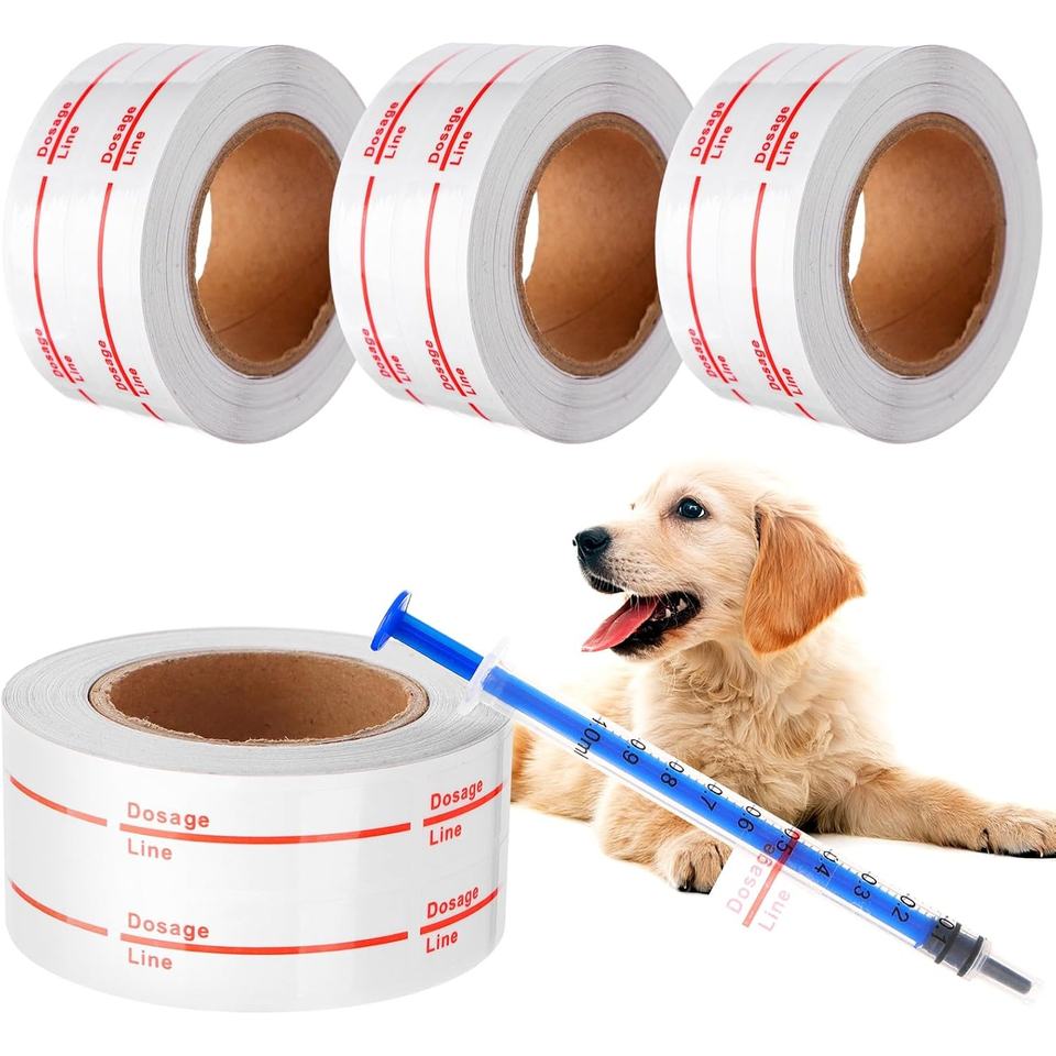 Autocollants pour seringues, marquage de dosage, étiquettes transparentes, ligne indicatrice rouge, étiquettes de pharmacie pour médicaments vétérinaires et pharmaceutiques