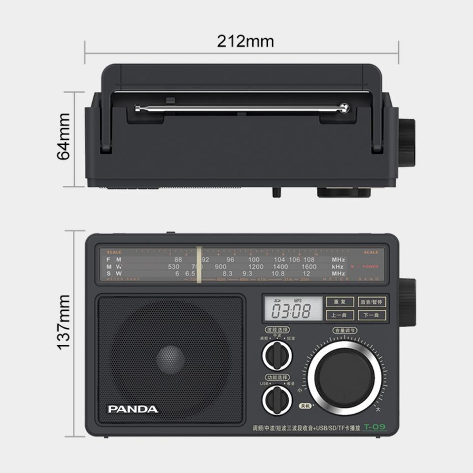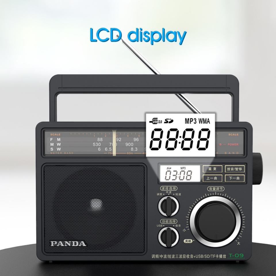 T-09 Senior Desktop Radio Receiver With SD USB MP3 Retro Style Radio Fm Semiconductor Large Knob Nostalgic Full Band Radio
