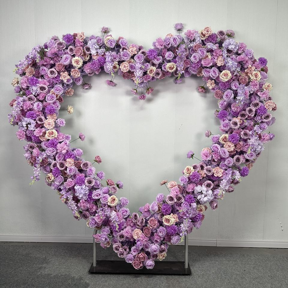 Arche de fleurs en forme de cœur de haute qualité T-HFA096, fleurs artificielles, arche de mariage, arche de roses en soie avec fleurs pour la décoration de mariage